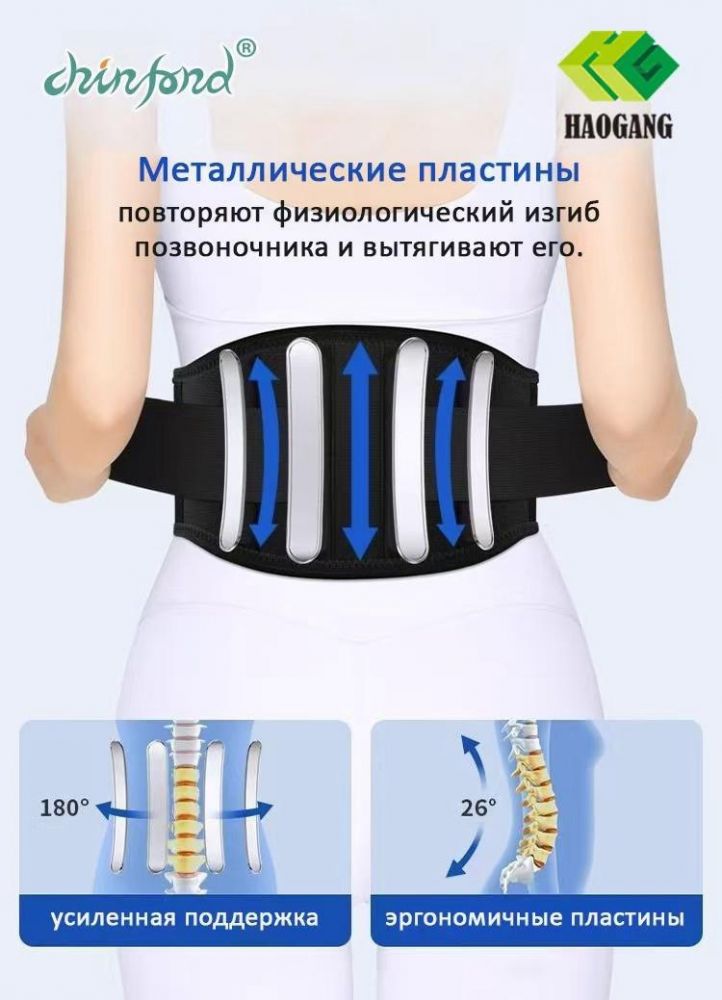 Турмалиновый пояс карсетного типа с металлическими пластинами,